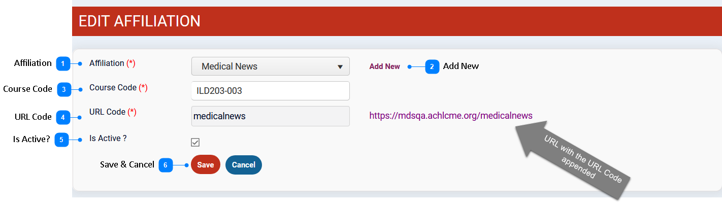 Check or uncheck check box to set this affiliation mapping with the course as an active or inactive. |