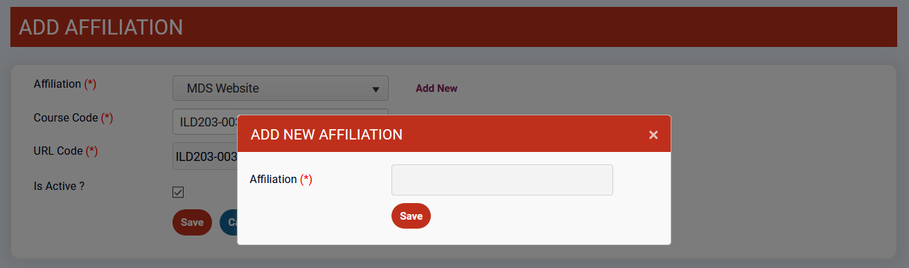 Enter or select the course code to which you want to associate/ link selected affiliation. |