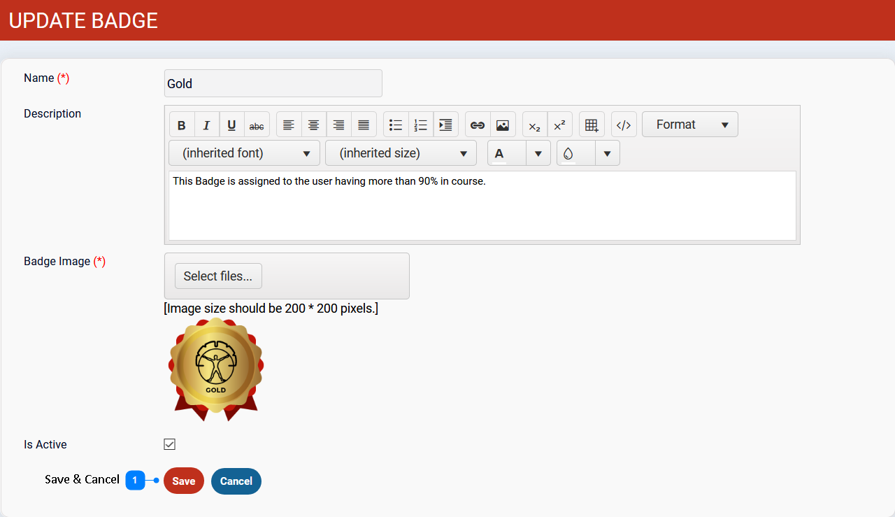 Update require detail of the badge and click Save button to save changes made otherwise click Cancel to cancel the update action. |