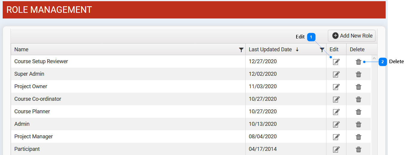 Click Delete icon to remove role. |